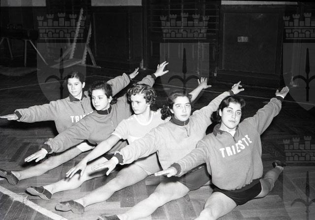 Cinque ginnaste in partenza per l'allenamento collegiale