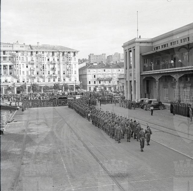 Il 22 ottobre 1951 il primo battaglione del Reggimento britannico South Lancashire, che per quattro anni ha prestato servizio lungo la linea di demarcazione tra le due zone del Territorio Libero, si imbarca sul piroscafo Empire Test, attraccato alla Stazione Marittima. Il battaglione e' diretto a Karthum, nel Sudan anglo-egiziano. Le truppe, partendo dalle caserme di via Rossetti bagagli in spalla, lasciano Trieste sfilando per le vie del centro, accompagnate dalle bande del TRUST, del reggimento North Staffordshire e del reggimento Northamptonshire