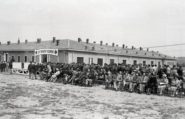 Sabato 15 maggio 1954: ispirata allo slogan "Potenza per la Pace", si svolge presso la caserma americana in via di Prosecco a Opicina la celebrazione delle Forze armate USA, alla presenza del comandante di Zona e di numerose autorità del GMA. Vengono eseguite sul posto parate ed esercitazioni militari. (da: Trieste 1900-1999. Cent'anni di storia, v. 6, p. 284). Nel servizio si vedono le insegne del 351° reggimento di fanteria, che insieme con il 349° e il 350°, formavano la 88a divisione di fanteria degli Stati Uniti, nota con il nome di battaglia di "Blue Devils" e con il simbolo del quadrifoglio blu, che fu di stanza nel Friuli Venezia Giulia dal: 1945 al 1954. Da notare che all'interno del quadrifoglio appare l'alabarda di San Sergio, simbolo della città di Trieste.