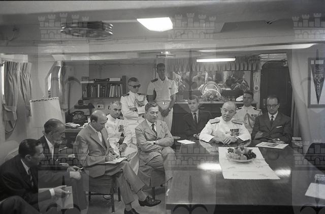 L'ammiraglio John William Ailes III (1907-1974) si era distinto nella Seconda guerra mondiale nelle operazioni belliche a Okinawa e giunge a Trieste in qualità di comandante della II Divisione incrociatori della VI Flotta degli Stati Uniti a bordo dell'incrociatore pesante USS Canberra e i caccia USS Hyman e USS Beatty.Le foto sono state scattate, a bordo dell'incrociatore Canberra, nell'occasione della visita alle unità della flotta americana riservata ai soci dell'Associazione italiana Fulbright, dell'American Field Service e del Cactus & Melon Club il 4 luglio 1962.