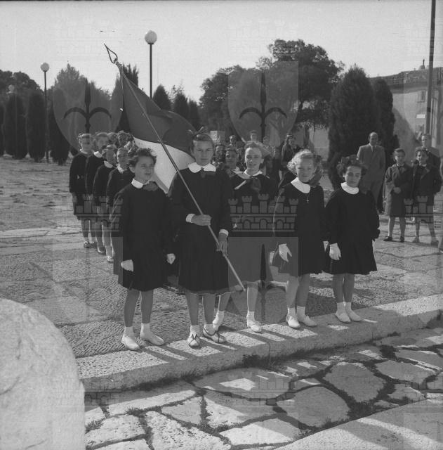 Le alunne della quinta elementare di San Stino di Livenza, vincitrici di un premio per il risparmio, sono le prime scolare d'Italia che vedono Trieste imbandierata. La foto è pubblicata su Il Giornale di Trieste del 13 ottobre.