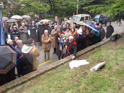 L'assessore Roberto Menia il presidente del Consiglio Comunale Bruno Sulli ed il vicepresidente della Provincia Massimo Greco alla cerimonia di scopertura nel Parco della Rimembranza sul colle di San Giusto