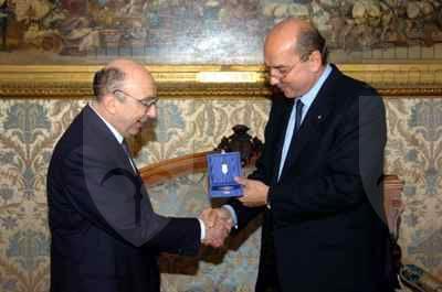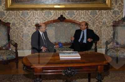 Il sindaco Roberto Dipiazza durante l'incontro con il Soprintendente ai Beni e Attivita' Culturali Giangiacomo Martines, avvenuto nel salotto azzurro del Municipio.