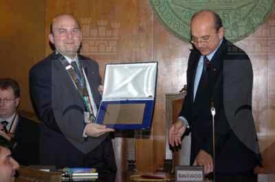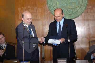 Il sindaco Roberto Dipiazza ed il Presidente del Consiglio comunale Bruno Sulli ed l'assessore comunale Maurizio Bucci con il presidente di Round Table Italia Maurizio Giudici e gli altri rappresentanti presenti al Meeting organizzato dalla Round Table Italiana in collaborazione con il Comune di Trieste, durante l'incontro avvenuto nella sala del Consiglio del Municipio.