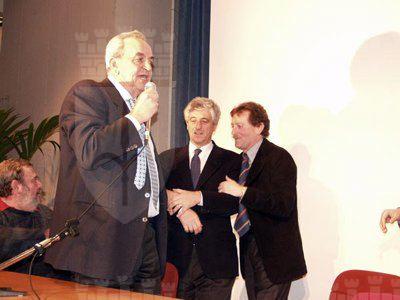 Presenti sul palco nell'auditorium del Museo Revoltella il sindaco Dipiazza, i figli Bruno e Tito, l'onorevole Gianni Rivera, l'allenatore Cesare Maldini, il giornalista Bruno Pizzul, il presidente della Camera di Commercio Paoletti