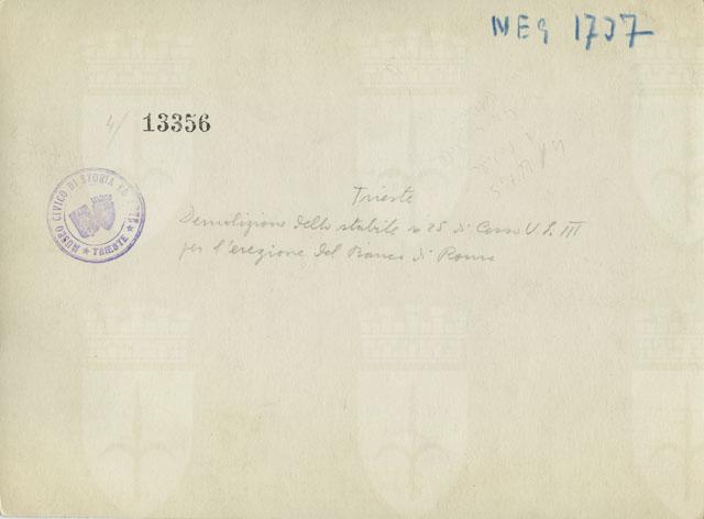 Demolizione dell'edificio situato al civico 25 di corso Vittorio Emanuele III (oggi corso Italia) per l'erezione del Banco di Roma, realizzato su progetto dell'architetto Bruno Slocovich.