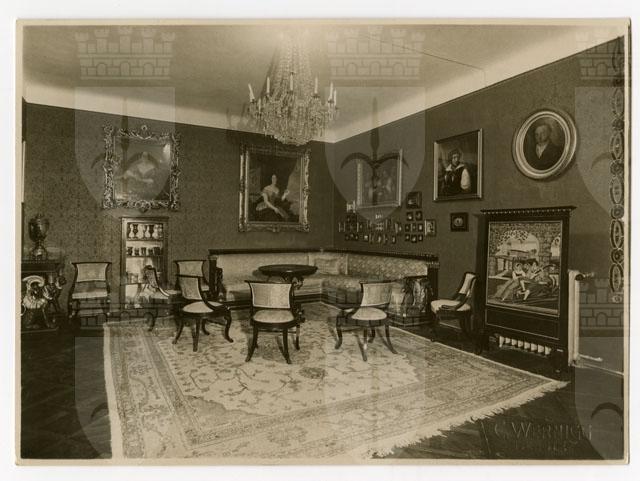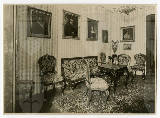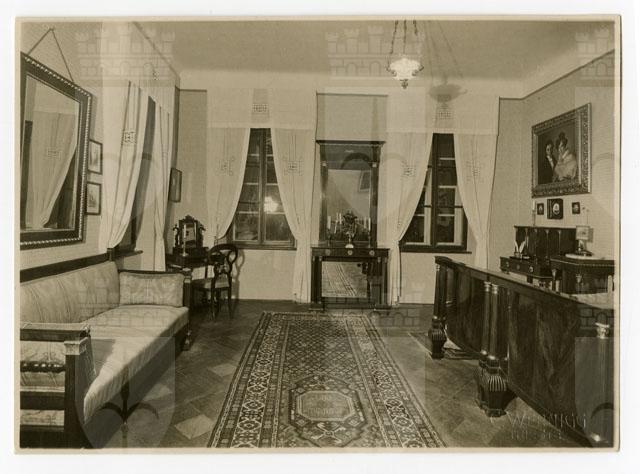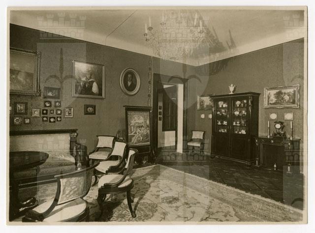 Mostra La casa dei nostri nonni : grande salone stile impero, camera da letto stile impero, anticamera, salottino di musica Biedermeier, salottino, salotto Biedermeier, camera da pranzo stile impero, salotto Biedermeier