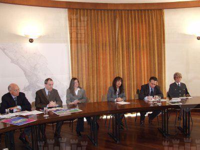 Angela Brandi, Enrico Sbriglia, Bernardina Mantovani Comandante dei Vigili Urbani, Claudio Saccari presidente dell'Eurocom seduti al tavolo della sala della giunta comunale