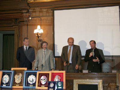 Il sindaco Roberto Dipiazza, Fabio Scoccimarro presidente della provincia, l'assessore Maurizio Bucci, Roberto De Gioia presidente del Comitato «Trieste in Palio» premiano i vincitori nella sala del consiglio comunale