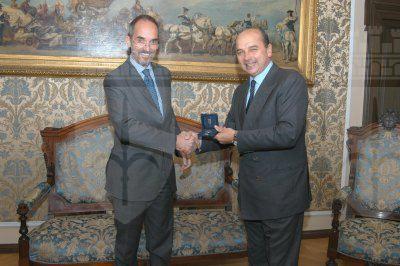 Il sindaco Roberto Dipiazza ed Alfons Kloß ambasciatore d'Austria durante l'incontro nel salotto azzurro del Municipio. Presente anche il presidente del Consiglio comunale Bruno Sulli