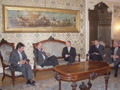 Il sindaco Roberto Dipiazza, l'assessore comunale Maurizio Bucci, il Console generale del Regno Unito Richard Northern, Roberto Galli addetto commerciale del Consolato ed il presidente del Consiglio Comunale Bruno Sulli, nel salotto azzurro del Municipio.