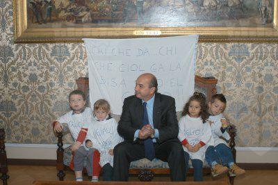 Il sindaco in salotto azzurro con le insegnanti ed alcuni bambini