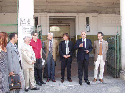 Il sindaco Roberto Dipiazza accompagnato dagli assessori Maurizio Bradaschia e Giorgio Rossi in visita al cantiere con i presidente e vicepresidente del consiglio comunale Bruno Sulli e Maurizio Ferrara e Alessia Rosolen consigliere comunale