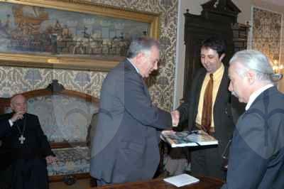 L'assessore Giorgio Rossi ed il Vescovo Eugenio Ravignani in Salotto Azzurro