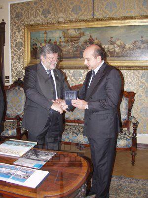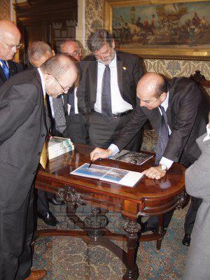 Il sindaco di Trieste con i rappresentanti della Massoneria triestina nel salotto azzurro del Municipio.