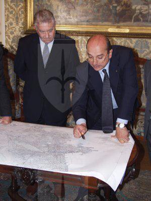 Il sindaco Roberto Dipiazza con l'asssessore comunale Giorgio Rossi durante la presentazione nel Salotto azzurro del Municipio.