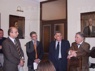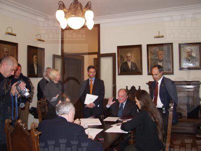 Il sindaco Roberto Dipiazza con l'assessore comunale Franco Frezza durante la conferenza stampa in Municipio. Presenti anche i consiglieri Salvatore Porro, Paolo Rovis ed Andrea Vatta