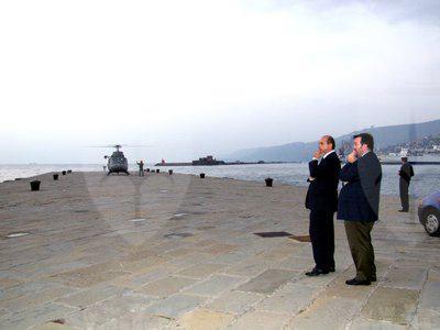 Il sindaco Roberto Dipiazza con l'Assessore Fulvio Sluga sul Molo Audace durante l'atterraggio dell'elicottero della Marina Militare.