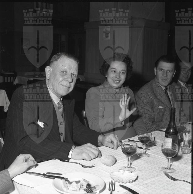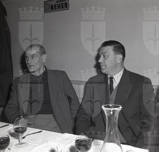 Felice Mezzari, consigliere nazionale della Federazione pubblici esercizi, a tavola con un gruppo di esercenti triestini presso la trattoria Pepi Granzo