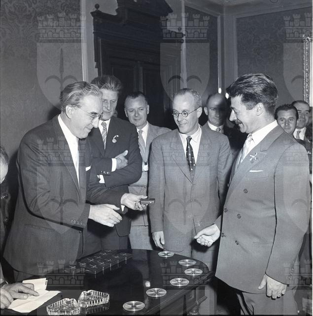 Congresso della FISI, Federazioni italiana sport invernali, presso la sede della Camera di commercio. Consegna targhe e onorificenze. Rinfresco all'Hotel Miramare