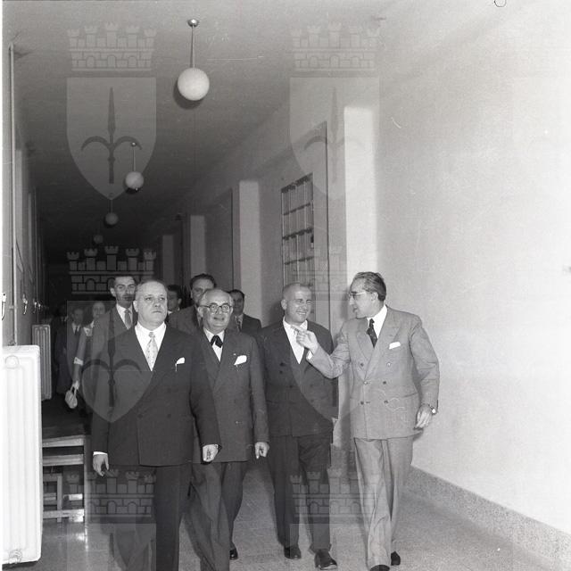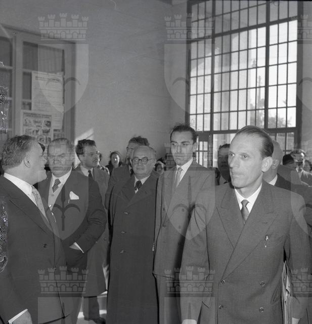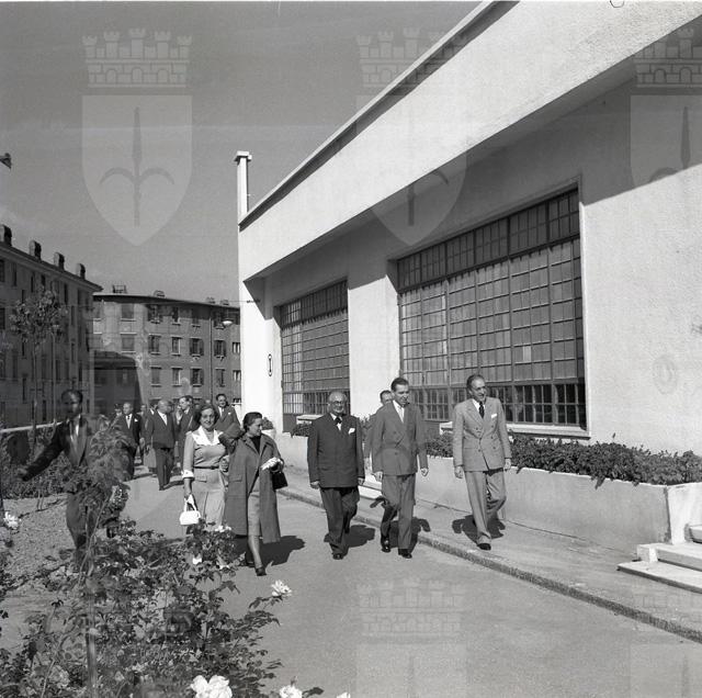 Il Sottosegretario al lavoro e alla previdenza on. Del Bo, accompagnato dal sindaco Bartoli, visita la scuola elementare di San Sabba in occasione dell'inaugurazione dell'impianto radiofonico offerto dall'INAIL. Presenzia alla posa della prima pietra del complesso di case popolari INAIL a San Sabba e partecipa alla firma degli accordi per la cessione all'INAIL del terreno di via del Teatro Romano, nella saletta delle cerimonie del Municipio.