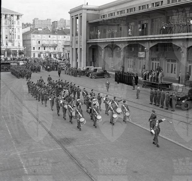 Il 22 ottobre 1951 il primo battaglione del Reggimento britannico South Lancashire, che per quattro anni ha prestato servizio lungo la linea di demarcazione tra le due zone del Territorio Libero, si imbarca sul piroscafo Empire Test, attraccato alla Stazione Marittima. Il battaglione e' diretto a Karthum, nel Sudan anglo-egiziano. Le truppe, partendo dalle caserme di via Rossetti bagagli in spalla, lasciano Trieste sfilando per le vie del centro, accompagnate dalle bande del TRUST, del reggimento North Staffordshire e del reggimento Northamptonshire