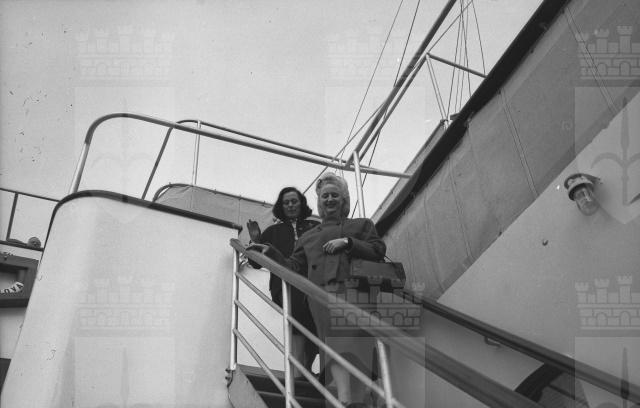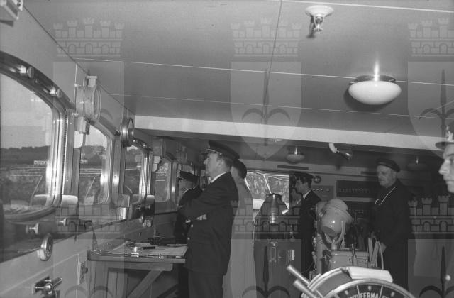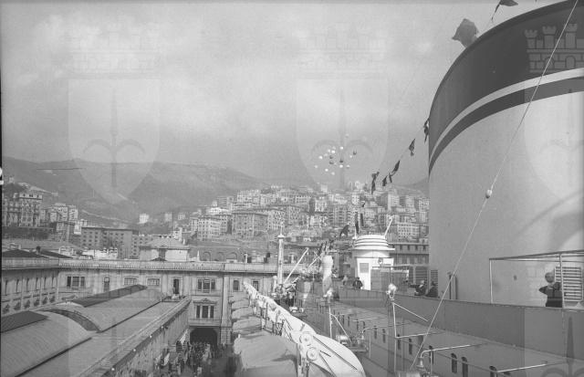 Sale interne e spazi esterni della motonave Augustus, fotografati durante la crociera inaugurale. Vedute del porto di Genova.