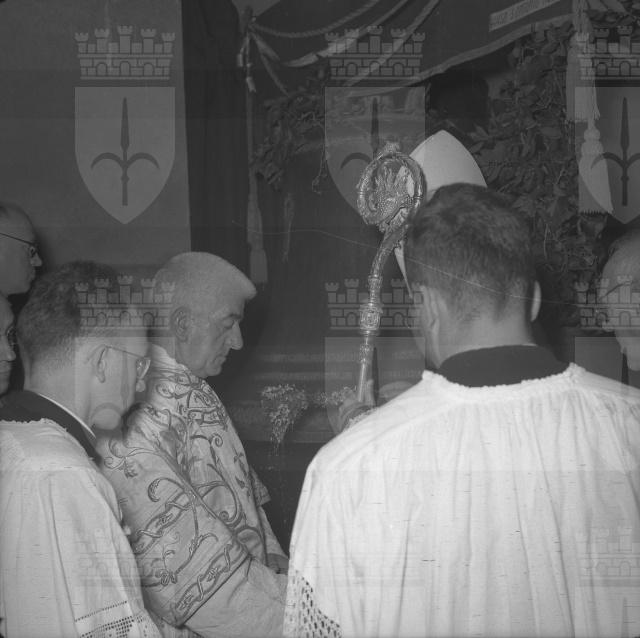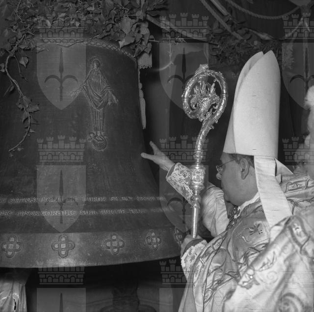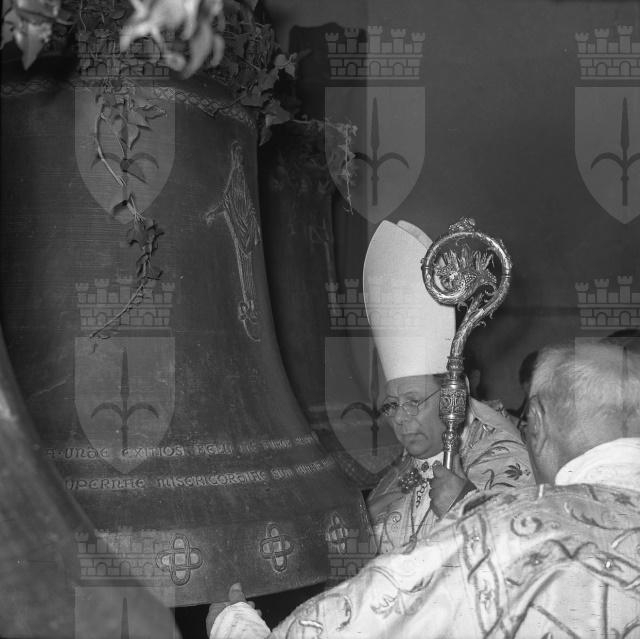 Quarantasette nuove campane, in sostituzione di quelle requisite o distrutte durante la guerra, vengono benedette dal vescovo Santin davanti alla Chiesa di Sant'Antonio Taumaturgo