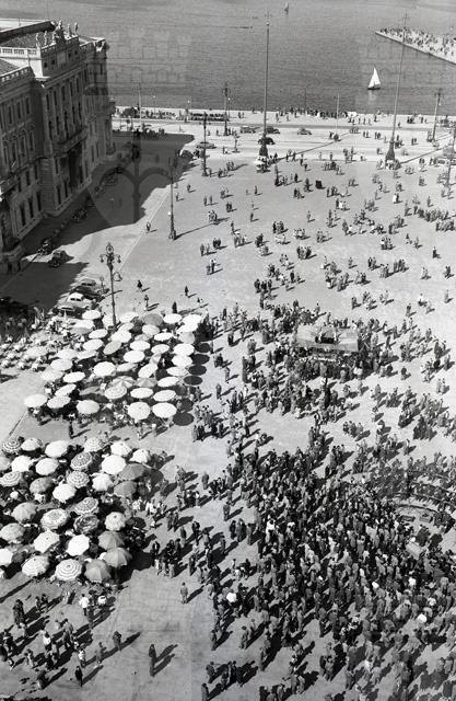 Il servizio comprende vedute di piazza Unità dall'alto in occasione della Festa dell'uva, altre vedute della città, delle rive e della baia di Sistiana