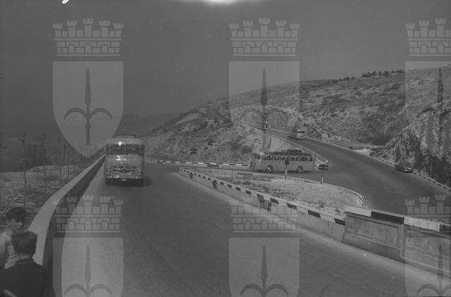 Una comitiva di turisti svizzeri in arrivo alla stazione ferroviaria di Trieste e diretti ad Abbazia per trascorrere la Pasqua, viene accompagnata da pullman triestini al confine con la Iugoslavia. Le autorita triestine si sono attivate per consentire agli autotrasportatori locali il transito fino al confine e ritorno, ostacolando l'idea del governo iugoslavo di prelevare i turisti alla stazione e condurli direttamente alla meta con propri pullman (dal Giornale di Trieste, 02.04.1953)