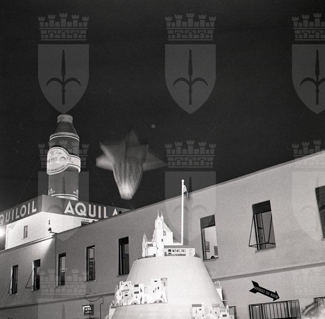 Riprese degli esterni della Fiera con particolare riguardo allo stand dell'Aquiloil; foto di gruppo del Coro Aquila davanti all'ingresso principale della Fiera e davanti allo stand dell'Aquiloil; volo di palloni aerostatici