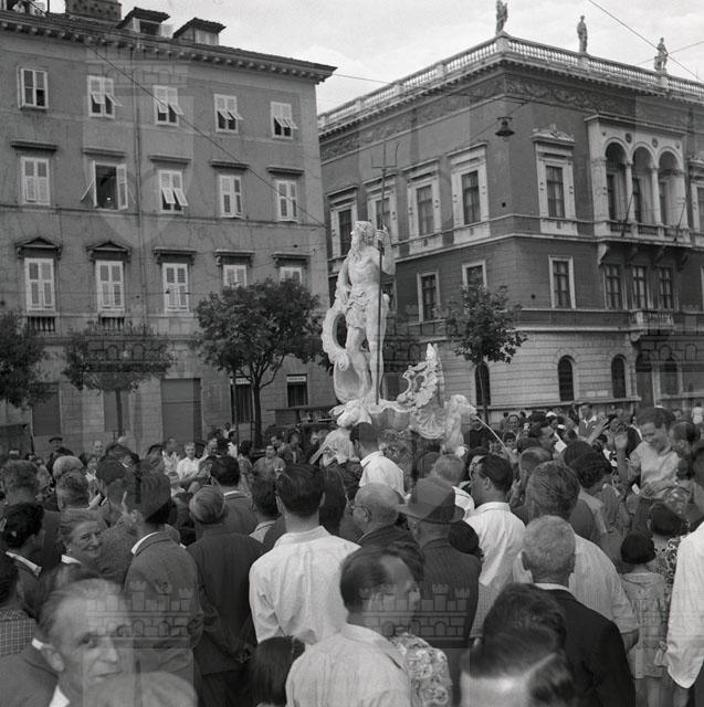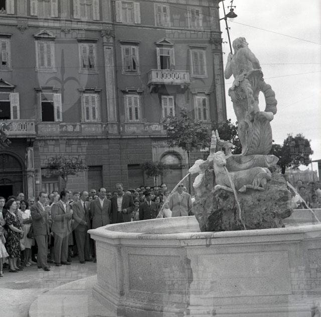 Inaugurazione della nuova ricostruzione della fontana, opera di Giovanni Mazzoleni, a cura dello scultore Nino Spagnoli (cfr. Trieste 1900-1999. Cent'anni di storia, v. 6, p. 189)