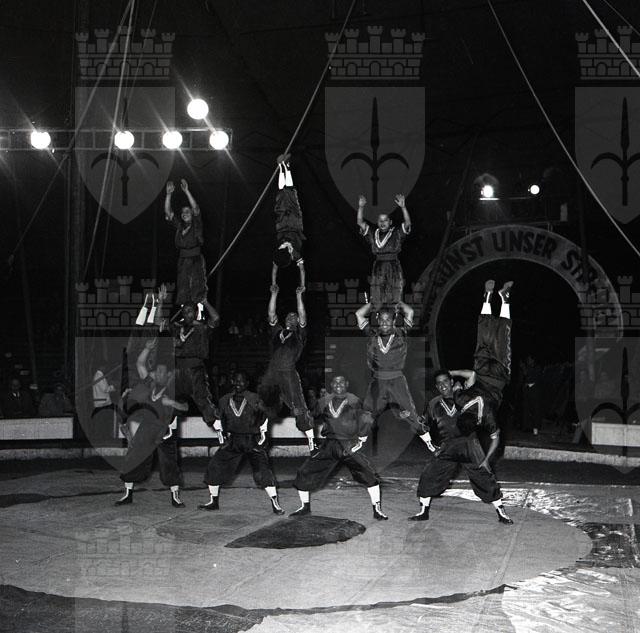 Il circo Krone, fondato da Carl Krone nel 1905 in Germania, a Monaco di Baviera, era ed è uno dei piu grandi del mondo e il più grande d'Europa. Dal 1 al 17 maggio 1954 era presente a Trieste, in via San Marco, con uno chapiteau o tendaggio che copriva un vano dalla capienza di 6000 posti e uno zoo di 412 animali di tutte le specie. Tra i numerosi programmi offerti: i 12 Mohameds, troupe di acrobati arabi che forma delle piramidi umane; Enrico Caroli e i suoi fratelli, audacissimi cavallerizzi; la famiglia Raspini sulle scale mobili; la trapezista Rose Gold sospesa al trapezio coi talloni nudi e senza rete di protezione; il domatore Schaefer con orsi bianchi che vuotano bottiglie e orsi bruni che vanno in bicicletta; Frieda Sembach-Krone provetta amazzone coi suoi 12 elefanti. (da: "Il Corriere di Trieste", 28 aprile e 4 maggio 1954)