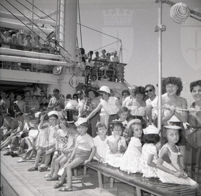 Croceristi e personale di bordo ritratti sulla motonave Africa. Gli interni della nave: la piscina, il bar, la sala da pranzo e la sala ludica; alcuni fotogrammi ritraggono i passeggeri e il capitano della nave.