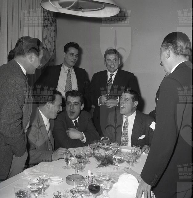 Nella sala rossa dell'Hotel Excelsior, il commissario generale del governo Palamara offre un ricevimento in onore del contrammiraglio Edward N. Parker e degli ufficiali della VI Divisione navale degli Stati Uniti ospite del porto di Trieste. Imbarcatosi sulla New Jersey, il contrammiraglio andrà verso la Costa Azzurra con le cacciatorpediniere Perry e Wren.
