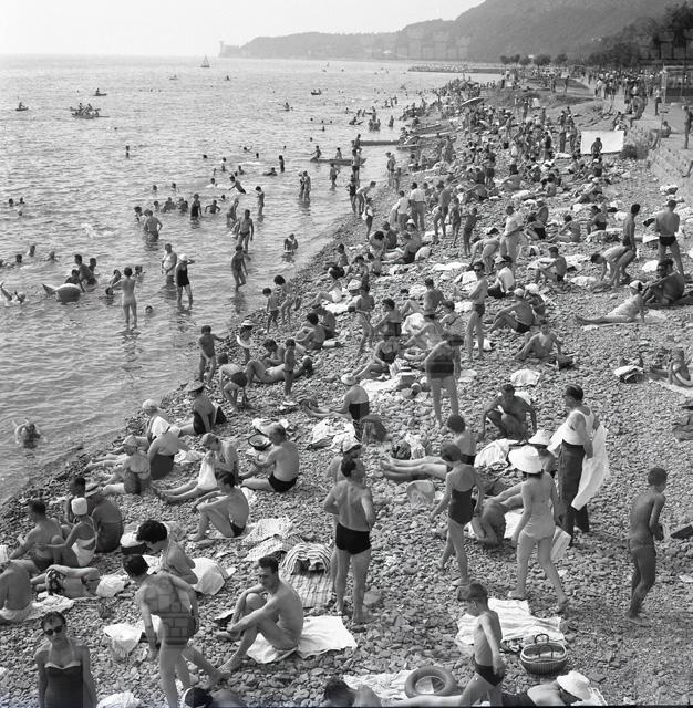 Barcola : Folla bagnanti sulla scogliera