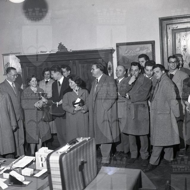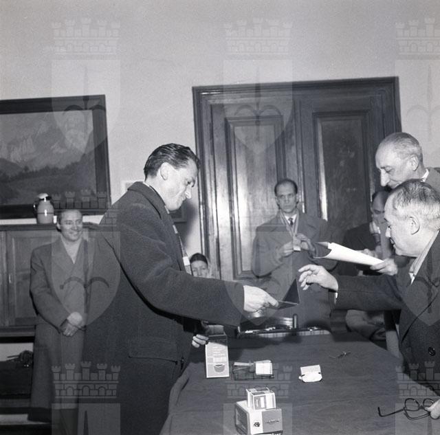 Presso la sede di via Milano della Società Alpina delle Giulie, Renato Timeus consegna il primo premio della miglior immagine del paesaggio carsico a Maristella Zaccariotto