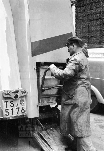 L'autocarro Bracchi Alessandri acquistato dall'amministrazione comunale prevede un nuovo sistema d'asporto delle immondizie. Lo scaricatore applica il bottino all'apposita apertura e il materiale viene aspirato.