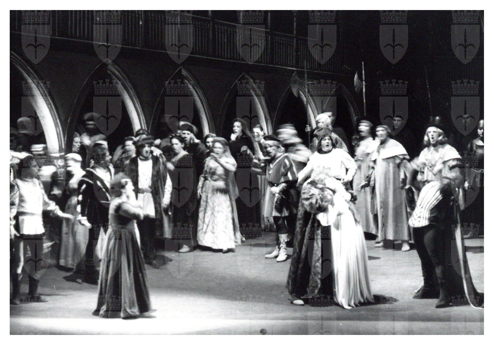 Otello, atto III, Luisa Maragliano nel ruolo di Disdemona davanti alla folla. Teatro Verdi, Trieste, 1967
