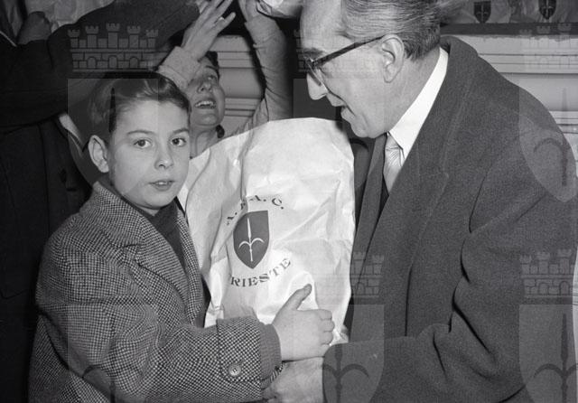 Consegna dei pacchi dell'ARAC ai bambini presenti