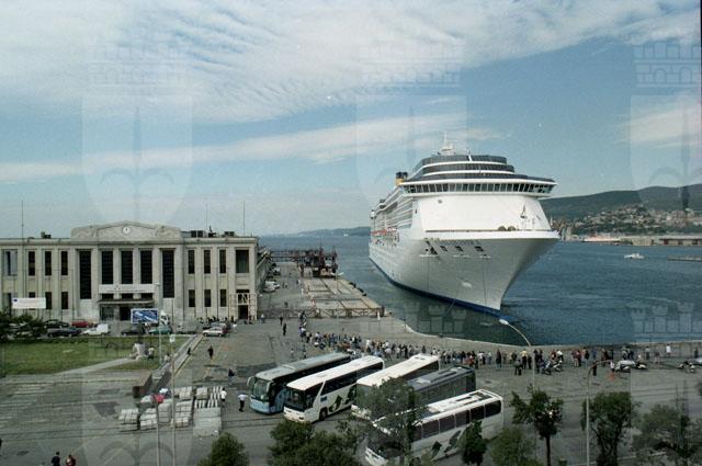 Stazione marittima, nave crociera, Costa Atlantica. Fuochi d'artificio, rive di Trieste, notturni, pescheria, foto artistiche, turisti, pullman.