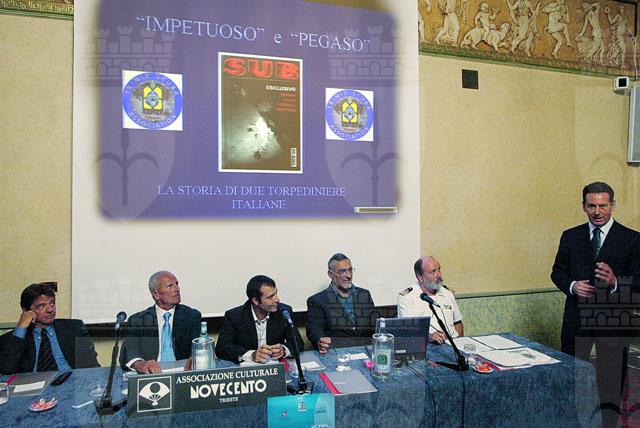 Provincia di Trieste, presidente Scoccimarro, Drabeni, Menia, convegno sulle profondità del mare, immersioni parco marino di Miramare con Enzo Maiorca e sua figlia, Francesca Vivarelli, fidanzata del presidente Scoccimarro.