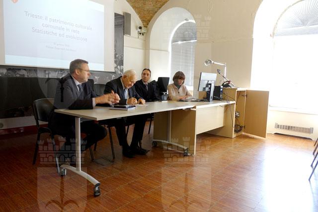 Presso la sala Bazlen di Palazzo Gopcevich, conferenza sul patrimonio culturale e comunale in rete, statistiche ed evoluzione, alla presenza di Giorgio Rossi, assessore alle Politiche della Cultura e del Turismo, dott.ssa Claudia Colecchia, responsabile della Fototeca e Biblioteca dei Civici Musei di Storia ed Arte, dott. Stefano Bianchi, responsabile dei Musei Storici e ing. Marco Ranieri, digital manager di DM Cultura