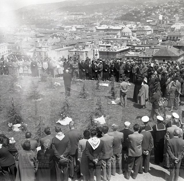 Riprese della cerimonia a San Giusto in occasione dello scoprimento dei cippi commemorativi dei caduti in guerra.