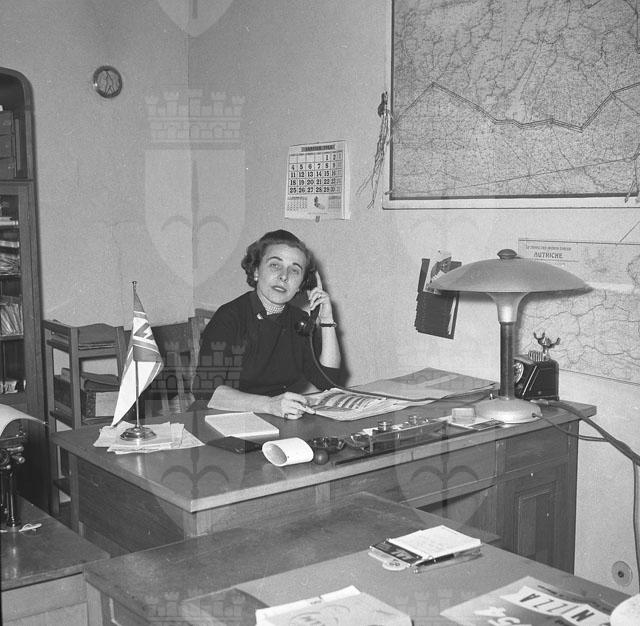 Servizio dedicato al personale dell'UTAT, agenzia di viaggi: gli impiegati posano per la fotografia, agli sportelli e negli uffici. Sulle lastre la vetrina dell'agenzia ricorda il ventennale di attività