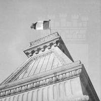 Servizio fotografico che documenta gli avvenimenti, anche drammatici, che precedettero il ritorno di Trieste all'Italia nell'ottobre del 1954. L'agenzia Giornalfoto accorpo' a posteriori, in un unico ampio reportage, la documentazione fotografica prodotta a partire dai fatti di sangue dei primi di novembre 1953 fino alla partenza degli alleati. La bandiera italiana sulla torre del Municipio.
