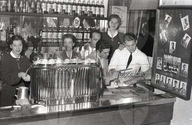 Sul bancone si nota la macchina del caffè mentre sulla mensola sono presenti le bottiglie di Bianco Sarti