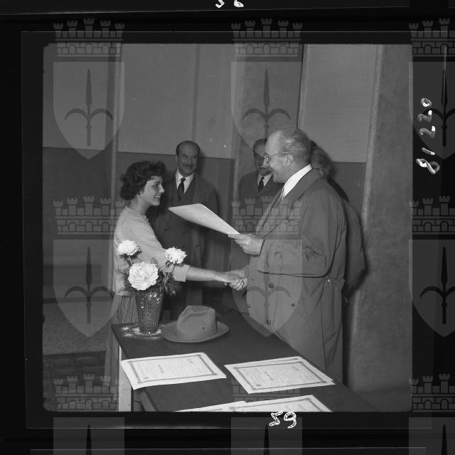 Le manifestazioni di chiusura dell'anno accademico dell'Università Popolare si svolgono in diverse scuole cittadine. Hanno luogo la consegna degli attestati, il saggio di pianoforte e di danza, l'esposizione dei lavori di taglio e cucito, la premiazione delle studentesse prime classificate al premio letterario femminile Haydee 1953.