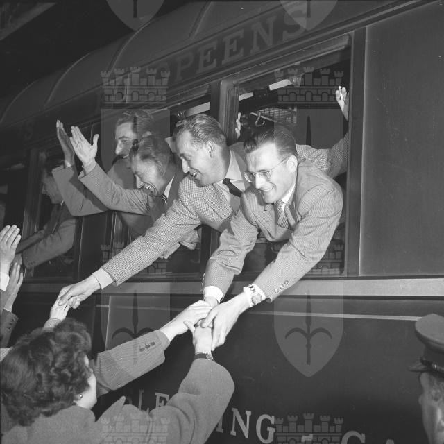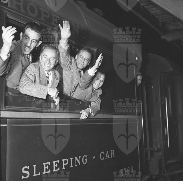 Otto sindacalisti triestini, capeggiati dai segretari della Camera confederale del lavoro dott. Novelli e Bazzaro e dal vicesegretario cap. Mislei, partono per Roma e da li' per New York per visitare i principali centri industriali e le varie organizzazioni sindacali statunitensi. Il viaggio di studio e' il risultato di un accordo fra la M.S.A. (Mutual Security Agency), il Comitato interministeriale per la ricostruzione, il Centro sviluppo economico di Trieste e la Camera confederale del lavoro e prevede l'invio di due gruppi di otto componenti ciascuno (dal Giornale di Trieste, 11 e 14.04.1953)