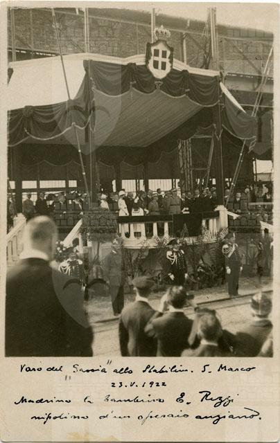 Varo del Savoia allo Stabilim. S. Marco Madrina la bambina E. Rizzi nipotina d'un operaio anziano : Monfalcone 23 maggio 1922